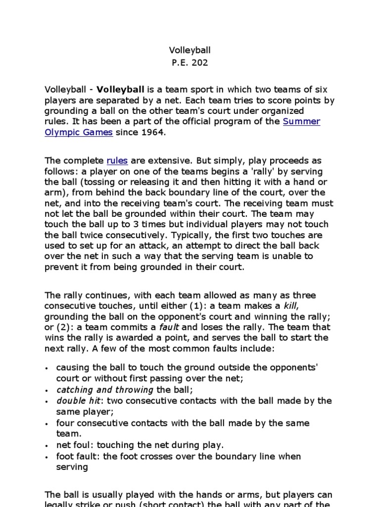 Volleyball P.E. 202 Volleyball - Volleyball is a team sport in which two teams of six players are separated by a net.