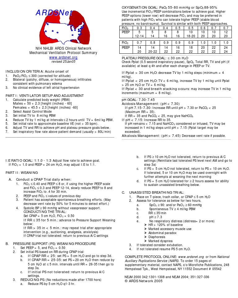 NIH NHLBI ARDS Clinical Network Mechanical Ventilation Protocol Summary www.ardsnet.org