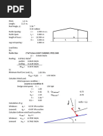 Building size: Length = 72 m (frame centers) Width = 25 m (column centers) Height = 7.5 m (floor to centerline at knee) Frame: Steel portal = single span across 25 m width Spacing =9m Pitch = 3