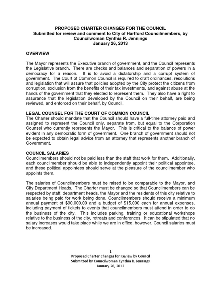 COUNCILWOMAN JENNINGS PROPOSED CHARTER CHANGES