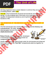 Cell Cells are the basic structural units and the building blocks of living organisms. Discovery of the cell Cell was first discovered by Robert Hooke in 1665 after observing a piece of cork under a magnifying device. Hooke coined the term cell. Number of cells Organisms made of only a single cell are called unicellular organisms; for example: Amoeba and Paramecium Single cell in these organisms performs all the basic functions such as digestion, respiration, and excretion. Organisms made up of more than one cells are called multicellular organisms. For example: Humans, cow, etc. In these organisms, the cells show division of labour as particular set of cells are involved in performing a specific body function. Shape of the cells Most of the cells have a definite shape. Some cells such as Amoeba have no definite shape. The human red blood cells (RBC) are spherical in shape. The muscle cells in humans are spindle-shaped. The human nerve cells have elongated branched structure. In plants and bacteria, the cell is enclosed in a protective covering called cell wall, which gives shape and rigidity to the cells. Size of the cells The smallest cell is 0.1 to 0.5 m in bacteria. The largest cell is the egg of an ostrich which is about 170 mm 130 mm in size. Size of a cell has no relation with the size of an organism. Cell structure and functions In multicellular organisms, each organ system is made up of several organs. Organs are further made up of tissues. Tissues are groups of similar cells performing a specific function. Components of the cell Cell membrane o It is the protective layer that surrounds the cell.