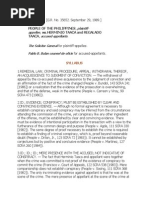 From the narration of the events that occurred on that fateful afternoon as disclosed by the sole witness for the prosecution, it appeared that the participants to the killing in question numbering more or less 11 inclusive of the 2 herein accused were animated by a desire to achieve a common purpose which was to kill their quarry. This can very well be deduced from the fact that prior to their entry into the yard, Juan Tacadao was already being mauled for his intrusion in preventing the mauling of the native Palawano. Further, it may be stated that one of the group armed with a long firearm identified as Rolando Carandang positioned himself at or near the back of the house to prevent their exit. Although he did not fire a shot, nonetheless his participation showed a concurrence of will with his armed companions. The foregoing findings are, in our opinion, insufficient to establish conspiracy. The lone prosecution witness, Tessie Asenita, testified that accused-appellant and Eder Ballabare were not originally with Edito's group when they attacked Moreto Miason and Juan Tacadao. By her account accused-appellant and Eder Ballabare arrived only after the fight between Edito's group, on the one hand, and the Tacadao brothers, on the other, had begun. The accused-appellant may have simply joined in the melee without necessarily any pervious agreement to assault Juan and Leonardo Tacadao, Jr. Even the trial court stated in its decision that it "is more disposed to believe that the encounter resulted in the accidental presence of the native Palawano, Moreto Miason, in front of the house of Tessie Asenita, who was mauled by the brother of Eder Ballabare regarding the disposal of almaciga gathered" and that "if the incident eventually involved the Tacadao brothers, it was more probable [that] the group of the accused resented the intervention of Juan Tacadao in preventing further mauling of the native Palawano who was their friend and companion." What was said in People v. Dorico 36 may, therefore, be said in the case at bar: The meeting of the victim by the accused was purely casual. No other evidence was presented by the prosecution to show conspiracy, which, according to the settled rule, must be proved as clearly and as convincingly as the commission of the crime itself. In People vs. Portugueza, this Court ruled that "although the defendants are relatives and had acted with some degree of simultaneity in attacking their victim, nevertheless, this fact alone does not prove conspiracy. The same degree of proof necessary to prove crime is required to establish conspiracy. For lack of sufficient evidence showing conspiracy accused-appellant must be absolved from liability for the killing of Juan Tacadao and held liable only for the killing of Leonardo Tacadao, Jr. Accused-appellant not guilty of Murder but only of Homicide The trial court also erred in finding that the killing of Leonardo Tacadao, Jr. by the appellant was attended by treachery, thus, qualifying the offense to murder. For treachery to be appreciated, two conditions must concur: (a) the employment of means of execution that gives the person attacked no opportunity to defend himself or retaliate and (b) the means of execution employed was deliberately or consciously adopted. 37 In a number of cases, 38 we had occasion to discuss factual circumstances which negate the existence of treachery. In People v. Nemeria, 39 we noted the following: (a) that the incident occurred at about six o'clock in the late afternoon, when people could still be recognized at a distance; (b) that the victim was not totally unaware of the attack; and (c) that accused has committed the crime in the presence of other people who could have lent support to the victim.
