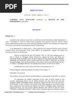 FISCAL ANG: Q And can you tell us how was your father challenged? A They were shouting at him, sir. Q And after your father came out of your house, what happened next? A He was pulled out by the man and they stabbed him. Q Now, you said that he was pulled by the man, how was he pulled and who pulled at your father? A I could recognize only one of them, sir. Q Now, how may were holding at your father? A Four (4), sir. Q How about the fifth one? A He was the one who stabbed my father, sir. Q Now, this person who stabbed to (sic) your father, do you know him? A Yes, sir. Q Now, is he in Court? A Yes, sir. Q Will you please point that person if he is in Court? INTERPRETER: The witness is pointing at a man wearing a white shirt, who identified himself as Rollie Alvarado. Q Now, Miss Witness, how (sic) the accused Rollie Alvarado stabbed your father? A While he was being held by the other man he stabbed him on the left side of the stomach. Q Now, what kind of weapon did he use? A Bolo, sir. 14