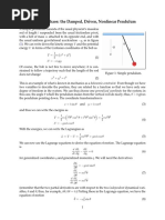 To keep things simple well neglect the mass of the rod. The position of the pendulum is a function q: R S 1 , that is, a function of time taking values in the circle. Concretely we will think of q(t) as the angle counterclockwise from the downwards z axis. However, we are allowed to treat this angle as a real number only if we remember that two angles describe the same position of the pendulum when they dier by an integral multiple of 2. Thus q(t) is really a member, not of R, but of the quotient group R/2Z, which is a way of thinking of the circle S 1 . Since the position of the pendulum at time t is really a point q(t) S 1 , it follows that q(t) is really an element of the tangent space Tq(t) S 1 . Similarly, the corresponding momentum p(t) lies in
