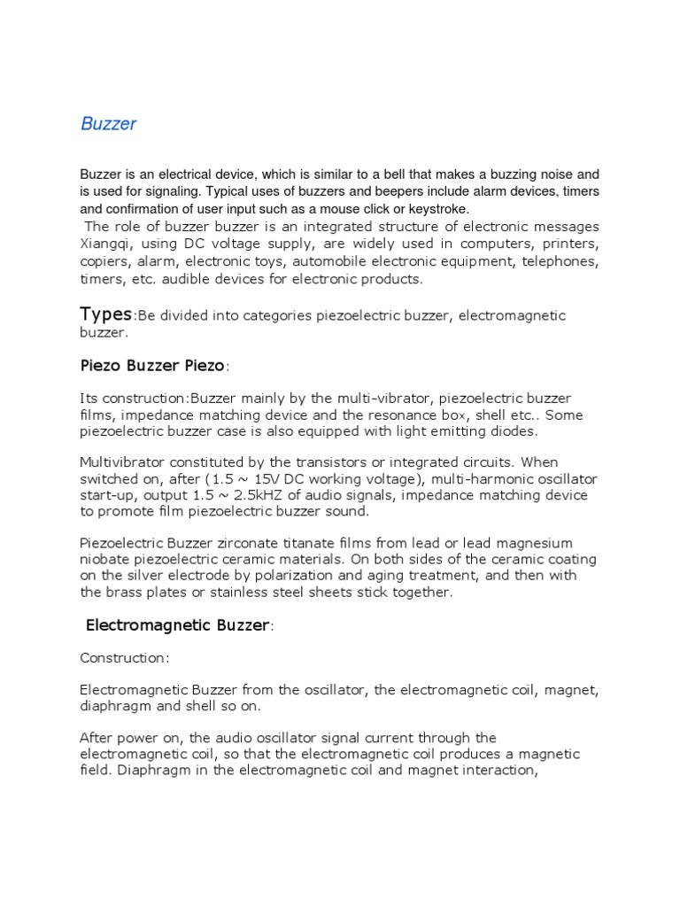 Types:Be divided into categories piezoelectric buzzer, electromagnetic