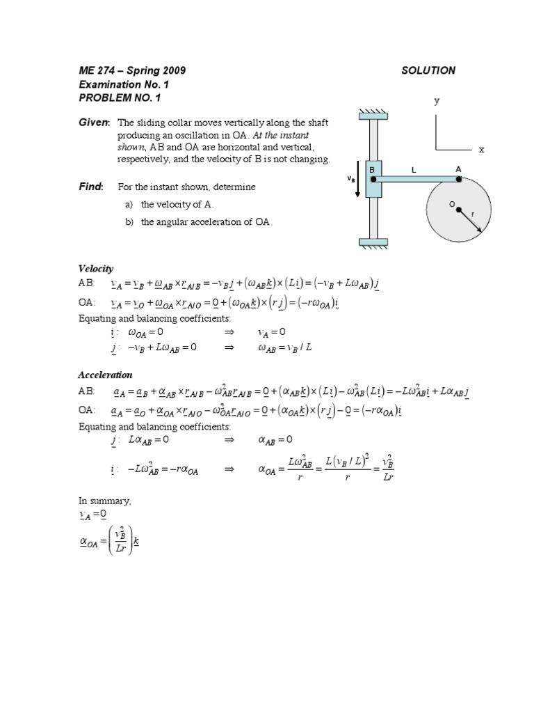 AB: v A = v B + ! AB " r A/ B = #vB j + (! AB k ) " ( L i ) = ( #vB + L! AB ) j