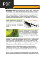 Until June 1950, the Bank was engaged exclusively on jute operation. Thereafter, it was felt that it could expand its business to include other commodities as well. Bank took a big stride in 1952, when it replaced the Imperial Bank of India, as an agent of State Bank of Pakistan. National Bank of Pakistan, besides providing the general banking services is also acting as an agent to State Bank of Pakistan, in areas where State Bank of Pakistan does not has its own branches. National bank of Pakistan is working with the State Bank of Pakistan in effective implementation of the credit policies that have been formulated from time to time by the government and State Bank of Pakistan to control and monitor the fiscal and monetary situation in the country. In January 1964, the bank started its well-known peoples credit scheme. The scheme was designed to provide financial assistance to the smaller businessmen on easy and liberal terms. It was welcomed all aver the country and has been of considerable service ever since. Its major objective was to build a strong middleclass, which is a powerful guarantee of social stability in an otherwise uncertain world. In the deposits area the bank is providing special accounts such as PLS Term Deposits (Monthly Income account), which provides a monthly with draw able return on the account. And there is a National Income Daily Account, carrying hybrid characteristics of saving and current accounts, distributes all profits on daily product basis to the account holders. The bank is trying to revolutionize the services that are provided over the counter and is working for an early change in all the branches of the bank. The introduction of a new set of services in shape of foreign currency accounts has further given a sharp rise in the banking field. This has made easy for the foreigners residing in Pakistan to be encouraged and make the inflow of foreign exchange in the country more stable. This new service, though shaken its importance after undue freezing of all accounts in 1998 have spread a situation of non-confidence among the masses, still these accounts are increasing in number. The management is considering the fact and doing planning for the sake of getting it through these unjustified pressures but still not been able to implement them in good manner. This is a further disturbed by the demotivated and unqualified staff that is working with the bank. To be able to regain the level of performance and profitability the bank has to take serious measures to escape from the political influence, build a competent and qualified pool of 3