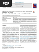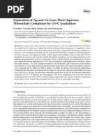 It follows from the over all reaction that the process requires high acidity at room temperature. However, thiosulphate decomposes at pH<4.0. This eect can be justied by studying at higher pHs and at elevated temperature. Therefore, theoretical assumptions are necessary. For a temperature range of 50 - 60 C, Ksp (Ag2 S) 1040, the acidity constants for H2 S are K1 K2 1020 and for SO2 is K1 101.7 From the electrode potential equations 0.14 + 0.03 log[S][H+ ]2 /[H2 S] = 0.45 + 0.015 log[SO2 ][H+ ]4 /[S] [SO2 ][H2 S]2 = 1021 can be obtained. From the equilibrium of SO2 dissolved in aqueous solution, K1 = [HSO ][H+ ]/[SO2 ] 3 can be written. For pH 4.0 the HSO3 concentration can be assumed as C and therefore [SO2 ] = C[H+ ]/[K1 ] (8) (7) (5) (6)
