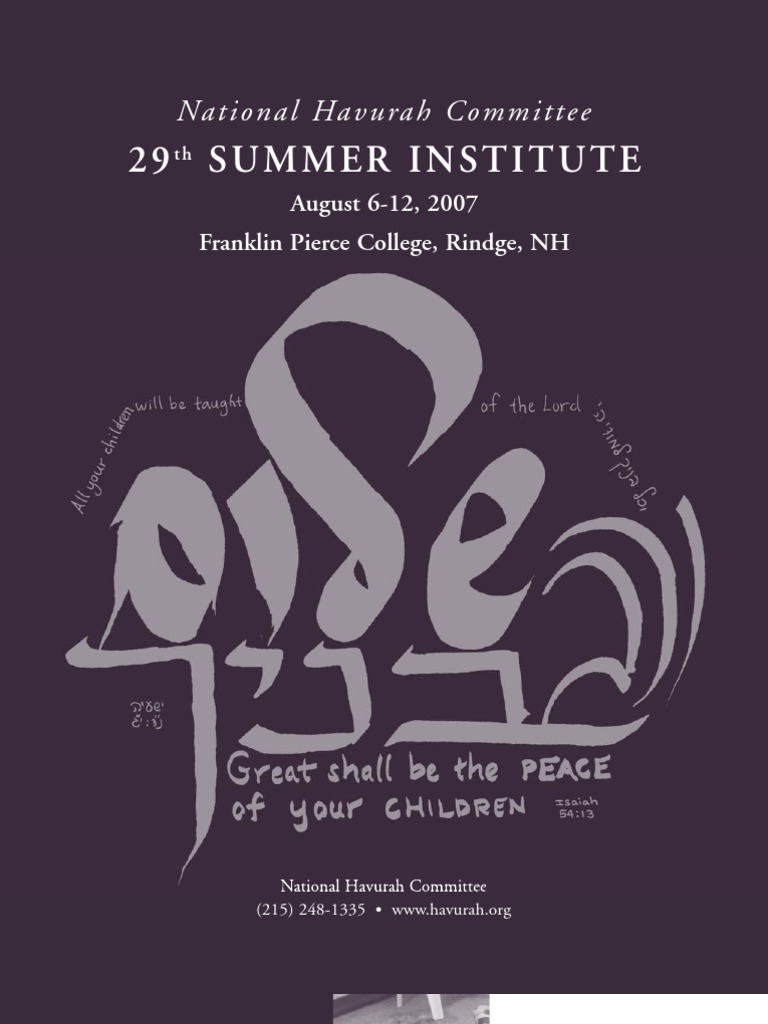 National Havurah Committee Summer Institute 2007 Brochure. Containing courses, a day at the institute, artists in residence information.