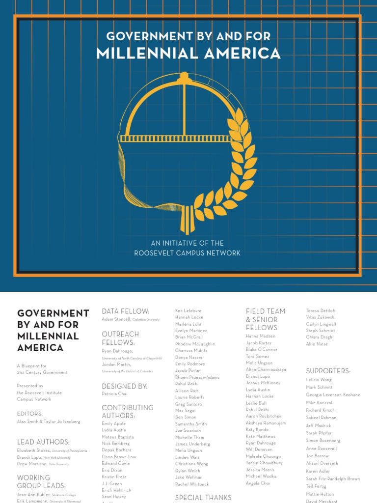 We set out to craft a blueprint and discovered, in conversations with over a thousand young people across the country, that the Millennial generation is not yet ready to give up on the Americas ever evolving experiment in a government by and for the people.
