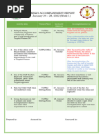 ACCOMPLISHMENT REPORT Performed the delegated tasks such as: Dividing of my group mates in their special fields. Clustering of the identified problems raised by the community people. Prioritizing the identified problems and making it to community nursing diagnosis. Separating the core group member per committees for the suggestions and recommendations. Accomplishing the core group meeting successfully. Accomplishing the programs we will implement next week.