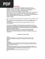 1. Display the Culture PowerPoint of todays Leccin for the class to read. a. (Turn on projector, Place the PowerPoint CD into the computer connected to the projector, open the Culture folder, and double-click on todays Leccin). 2. Read the Culture Newsletter. a. As you read, have the students try to guess the meaning of the Spanish words. b. You may ask individual students to take turns reading. 3. Read and Practice the Vocabulario de la Semana list. a. Inform the students that they do not need to memorize the wordsjust recognize them for comprehension while reading. 4. (Optional) Read the culture lesson again focusing on the new vocabulary. 5. Group Discussion. a. Compare and contrast the lesson with the students own diverse cultures. b. Encourage the students to use as much Spanish as they can during the discussion.