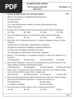 Choose the best design (a) (i), (iv), (vi), (viii) (b) (i), (iv), (vii) (c) (i), (iii), (v), (vi), (viii) (d) (ii), (v), (viii) 12. Which one of the following are essential features of an object-oriented programming language ? (i) Abstraction and encapsulation (ii) Strictly-typedness (iii) Type-safe property coupled with sub-type rule (iv) Polymorphism in the presence of inheritance Choose the correct one: (a) (i) and (ii) only (b) (i) and (iv) only (c) (i), (ii) and (iv) only (d) (i), (iii) and (iv) only Unit 5th Q. Which line will produce error? Class phone: private Transmit, private Receiver { } 1. int main() 2. { 3. phone obj; 4. Tranmit* obj1 = &obj; 5. Received obj2 = &obj; 6. } (a) 3rd line will produce error (b) 4th line will produce error (c) 3rd and 4th line will produce error. (d) 5th line will produce error Q. a) b) c) d) -Q. Function overriding is done in context of, Single class Single derived class Single base class Derived and base classes