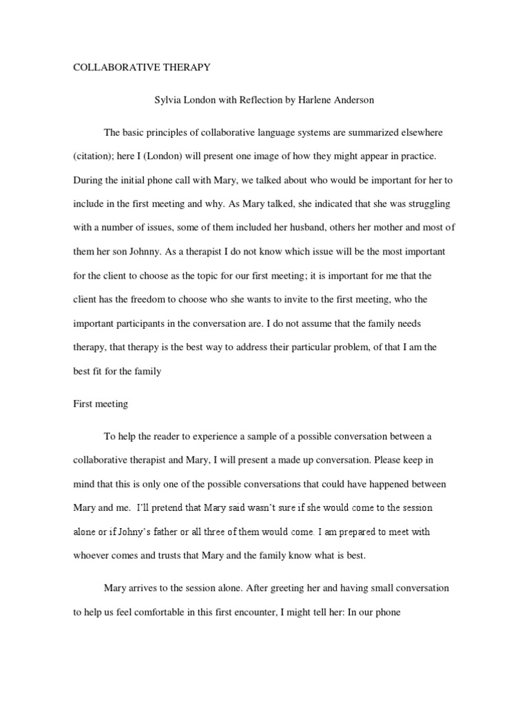 COLLABORATIVE THERAPY Sylvia London with Reflection by Harlene Anderson The basic principles of collaborative language systems are