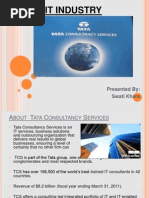 It later bagged the countrys first software project, the Inner-Branch Recon Ciliabion System(IBRS) for Central Bank of India It is also provided bureau services to Unit Trust of India, thus becoming one of the first companies to offer BPO services. 1990s TCS started exporting its services. 1974s offshore client 1981s TCS setup Indias first software research and development center the TRDDC in pune(Tata Research Development & Design Center) 1999 , TCS became a publicly listed company. 2005, TCS ventured into a new area for an Indian IT services company Bio-infermetics 2011 the company entered the small and medium enterprises market with cloud based offering June 2011 research company on global services, Everest group Recent News and developments in TCS; TCS has managed to receive 10 large deals. TCSs planning to hire 50000 associaties in 2012