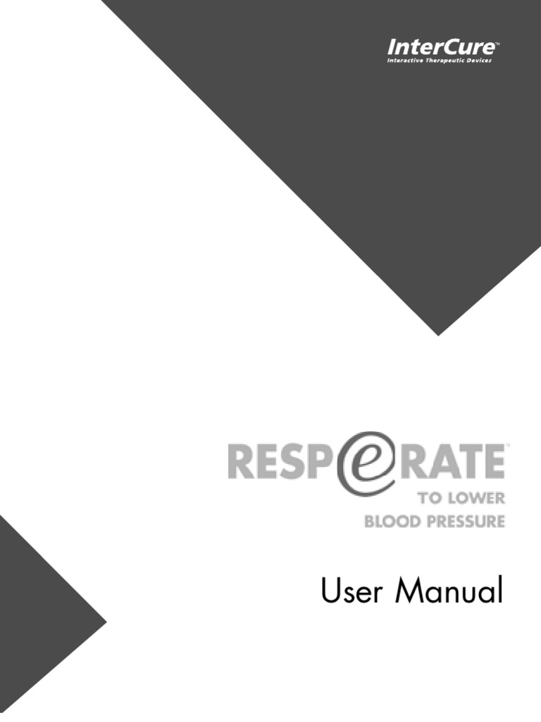 the user through interactively guided and monitored breathing exercises. The device is indicated for use only as an adjunctive treatment for high blood pressure together with other pharmacological and/or non-pharmacological interventions. Over-the-counter Use Contraindication None known. Precautions Please note: RESPeRATE should only be used as part of your overall health program for achieving goal blood pressure, as recommended by your doctor. RESPeRATE can be safely used in conjunction with medication and lifestyle modifications such as diet and exercise. Do not use this device without consulting your physician if you suffer or have suffered in the past from: active ischemic heart disease/unstable angina, severe congestive heart failure, chronic atrial fibrillation, stroke resulting in permanent impairment, chronic renal failure, severe asthma, chronic obstructive pulmonary disease (COPD), like chronic bronchitis and emphysema, or major organ failure. InterCure strongly recommends that you do not modify your hypertension treatments without the advice and consent of your physician. Do not use your RESPeRATE when you need to be alert or to concentrate, or when using heavy equipment. Do not use RESPeRATE while driving. If you experience any side effects or if you feel any change in your general health or mood, immediately discontinue use of your RESPeRATE, and contact your physician. Breathe naturally throughout the exercise. Excessive deep breathing may cause dizziness and/or palpitation.