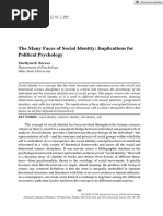 INTRODUCTION Research on the nature of identity in social psychology focuses on the relationship between society and an individual and how this influences the formation and composition of individual identity (Owens 2006). Much research has focused on favoritism shown by the person toward the group with which they are affiliated (Tajfel 1982). What has received less attention is the expression of this identity when evaluating another member of the community in a situation with which they are not involved. What is of interest to a theory of identity is how individual group affiliations of the person evaluating works in conjunction with the group affiliation of the person being evaluated to produce an appraisal. Sheldon Stryker has stated that identities are internalized designations of positions claimed and validated in social interactions (Stryker and Craft 1982:162). This idea has seen substantial refinement and modification over the years but most research in the field of identity in sociological social psychology still proceeds with the spirit of this definition as its foundation. Before examining interactions between individuals it is necessary to have a working understanding of how a cohesive identity is formed and the dynamics involved in its generative processes. The incorporation of identities into the self is understood to be a lifelong process. As an individual learns the rules of behavior of a group they come to identify themselves as a member of the social group. These behaviors are incorporated into the persons repertoire along with the group identity to which they are connected (Arena and Arrigo 2005). From this multiplicity of identities actors build a sense of self. This represents a general description of the creation of identity and the self though some debate exists as to the specific nature of this process. THEORIES OF IDENTITY Social identity theory (SIT) focuses on discussing the nature and extent of the cognitive processes of categorization and self-enhancement. Social arrangements are represented by social belief structures the individuals possesses about the nature of inter-group relations and the best ways to achieve or maintain positive distinctiveness, that our group is better than their group. These structures have a number of different elements; beliefs about the social status of ones group, beliefs about the stability of this status, its legitimacy, and how permeable are the group boundaries (Hogg 2006). It is theorized that these belief structures are arranged in order to generate evaluatively positive distinctiveness between groups. This has the result of the in-group being evaluated positively, and by virtue of being a group member the individual, resulting in self-enhancement. Identity control theory a sociological approach, places a participant in a social system whose behavior is then predicated upon position and interpersonal connections within the system. Individuals possess different identity standards that represent what it means to be a member of a group, an occupant of a role, or simply the type of person they are (Burke 2004). The arrangement and type of social connections which characterize identity standards vary between identities, but are tied to the social structures in multiple ways. Society gives form to
