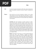 OBJECTIVE: The objective of this experiment is to study an 660 nm/ 950 nm Fiber Optic Analog Link. In this experiment you will study the relationship between the input signal & received signal.