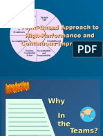 Preparing the professional workforce for tomorrow to more easily operate in or to lead teams is desperately needed. Two new programs sponsored by government departments show that organisations are trying to address the problem on their own: the DEST (Department of Some years ago, and with much fanfare, a Education, Science, and Training) Highsecond agency reorganised the entire organisation into teams. The idea was that Performance Team Program for intact teams and no one would be employed there without The Calvary Hospital Leaders of Change being in a team. There, teams offered the Program for cross-functional teams. Carefully promise of improved morale, retention, designed, implemented, and sustained by conprofessional development, and innovation tinuing organisation focus and support, these and creativity. initiatives may succeed far better than the two Coming on the scene after five years the examples introduced in the box inserts.