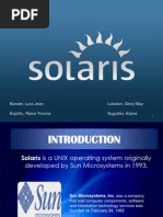 1.) INTRODUCTION:Solaris is a UNIX-based operating system introduced by Sun Microsystems in 1992 as the successor to SunOS. Solaris is known for its scalability, especially on SPARC systems, and for originating many innovative features such as DTrace and ZFS. Solaris supports SPARC-based and x86-based workstations and servers from Sun and other vendors, with efforts underway to port to additional platforms. Solaris is certified against the Single UNIX Specification. Although it was historically developed as proprietary software, it is supported on systems manufactured by all major server vendors, and the majority of its codebase is now open source software. Sun Solaris also known as SunOS or Sun is the name of the Sun Companys UNIX variant operating system that was originally installed on SPARC computers. It is sold together with the OPENLOOK user interface OpenWindows. This bundle is known as Solaris. SunOS 4.1.x (as part of Solaris 1.x) is a BSD UNIX system, and supports multiprocessing, but not yet multithreading. Further development of Solaris 1 was discontinued at the end of 1998. In parallel to Solaris 1.x, Sun has launched a Version 2.x on the market. This is an implementation of System V. Beginning with Version 2.2 it also supports multithreading, that is to say, the distribution of threads among various processors. The allocation of the processors is done automatically, so that the user does not have to be involved. From Solaris Version 2.5 onward, 64-bit processors and the use of Ultra-Creator graphics for 2-D and 3-D applications are supported. OpenSolaris project.