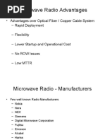 Example: The typical protected MW terminal (1 + 1) has MTBF of 2,200,000 hrs; it takes 0.5 hrs to do the actual repair at the remote site, and the travel time is 3 hrs. With good maintenance practice and spare parts available, we can assume P = 95 % (or 0.95). Let us calculate unavailability of four MW hops connected in tandem (daisy-chain). MTTR = 0.5 + 3 + (1 0.95)24 = 4.5 hr Microwave hop (excluding all other equipment) has two terminals in series, so the unavailability is [ For the four-hop system, total unavailability is UTOT = 4 0.000004091 = 0.000016364 Total availability is ( ) ( ) ]