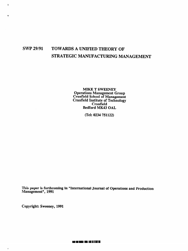 SWP 29191 Towards A Unified Theory of Strategic Manufacturing Management