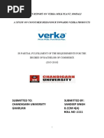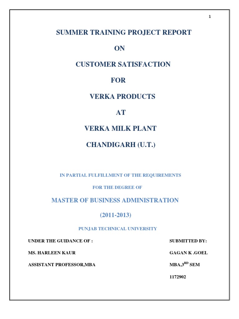 SUMMER TRAINING PROJECT REPORT ON CUSTOMER SATISFACTION FOR VERKA PRODUCTS AT VERKA MILK PLANT CHANDIGARH (U.T.)