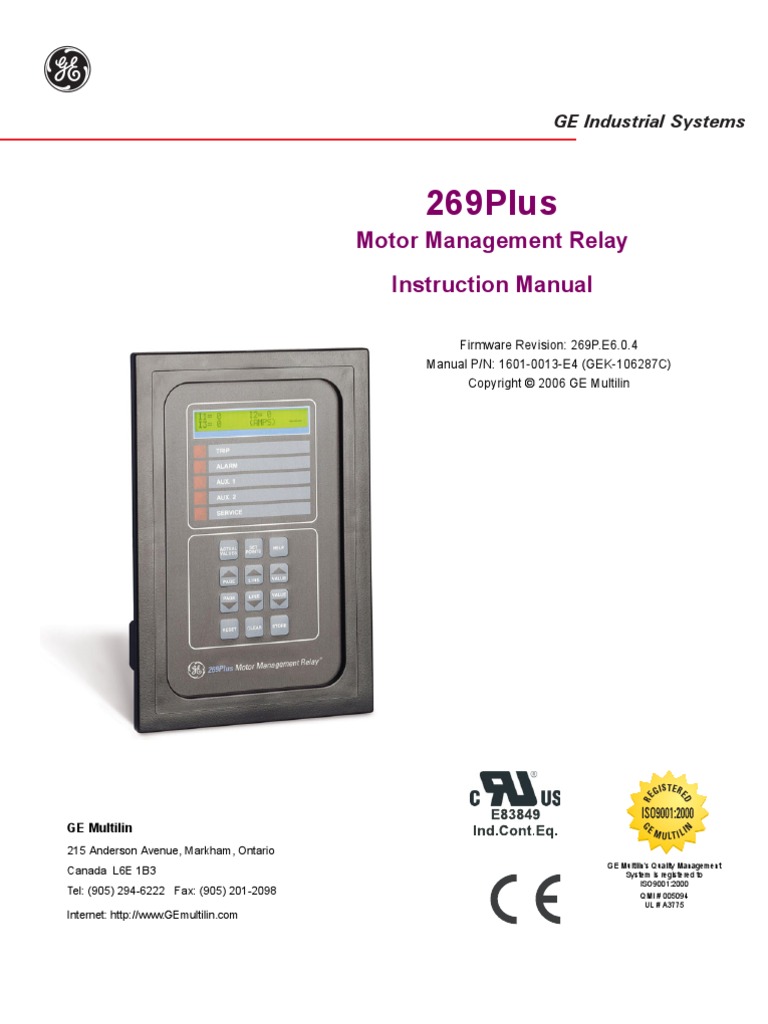 Firmware Revision: 269P.E6.0.4 Manual P/N: 1601-0013-E4 (GEK-106287C) Copyright 2006 GE Multilin