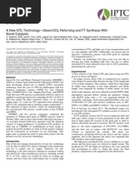 (flaring) in oil and gas producing countries. (3) Economy A. This is the participation in the planning of a development project and contribution to technologies through independent and superior, domestic technologies. B. This is the promotion of development of domestic companys gas fields and linking to gas producing countries that have superior technologies. 2.2 Trends of developments of the GTL technology at each company Table 1 shows the syngas manufacturing technologies, FT synthesis technologies and the developmental stages at each company developing GTL technology. (1) Syngas manufacturing technology While there are a variety of methods undertaken in the development of syngas, many methods vary according to each companys developmental concepts and objective applications. As a general flow, there is a move toward ATR (Auto Thermal Reforming) that uses oxygen. However, because it requires an oxygen plant, thus incurring enormous costs, the issue of excess equipment costs becomes a problem. (2) FT synthesis technology Both BP and Shell employ a multi tubular fixed bed, but that method is considered to be better suited for a slurry bed because it is more efficient in removing the heat of the reaction in the FT synthesis, and because the equipment can be more compact. However, this method still has many unanswered technical issues, such as establishing a method for designing scaled-up systems. 2.3 JOGMEC/GTL technical characteristics (see Fig. 1) The JOGMEC-GTL processes are compared in Fig. 1 to the latest representative model of conventional GTL processes (ATR). The conventional process requires an oxygen plant and equipment for the removal of carbon dioxide gas in order to manufacture syngas. To derive syngas having an optimum mole ratio of 2:1 (hydrogen to carbon monoxide) in the FT synthesis, equipment that adjusts the hydrogen concentration in the synthesized gas is necessary. On the other hand, by employing carbon dioxide gas reforming, natural gas that includes carbon dioxide gas in the crude material can be utilized as it is. This makes it possible to obtain syngas having an optimum composition in the FT synthesis in one step. That capacity translates into lower construction and operating costs. This was achieved through the development of a stable catalyst that is operable even