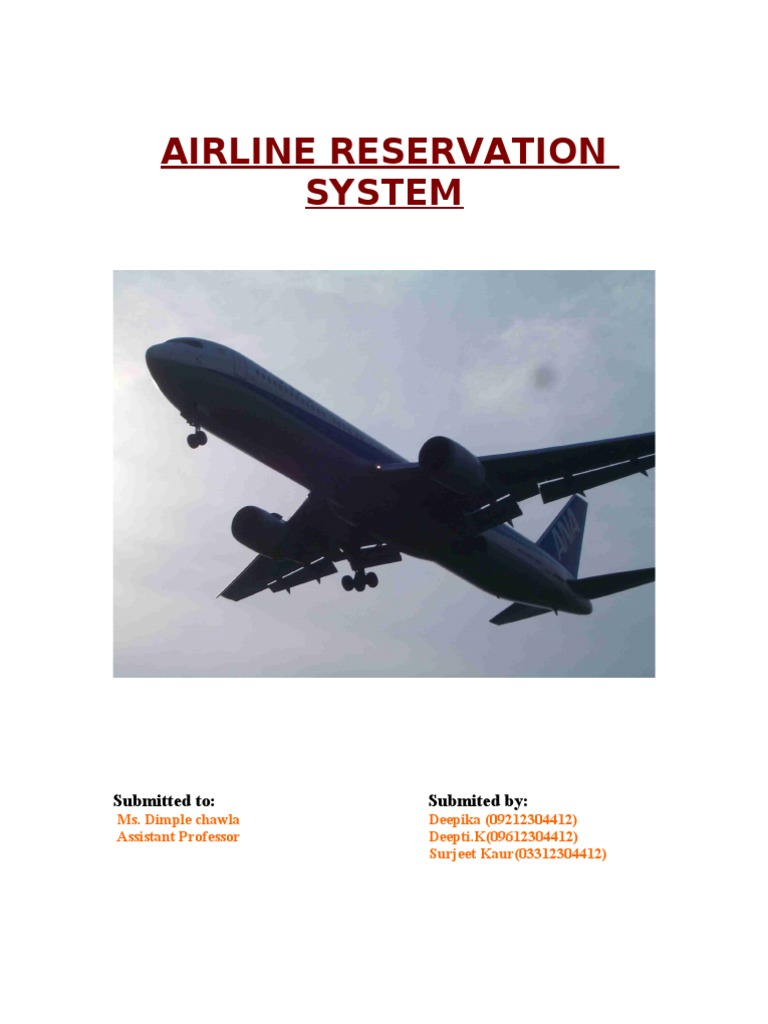 AIRLINE RESERVATION SYSTEM ORGANIZATION