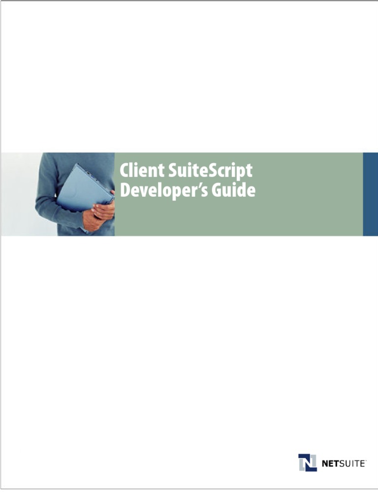 Welcome to NetSuites Client SuiteScript feature. With Client SuiteScript you can write custom JavaScript code that performs validations and calculations on forms. You can use custom code in combination with custom fields, forms and records to completely tailor your business management system to your individual business needs. The purpose of this guide is to introduce you to NetSuite Client SuiteScript tools. It provides step-by-step instructions on how to create and implement Client SuiteScript for your forms as well as real-world examples for how companies use custom code to customize NetSuite accounts for their businesses. Client SuiteScript requires an understanding of JavaScript code and is intended to be used by customers with some advanced programming knowledge only.