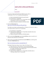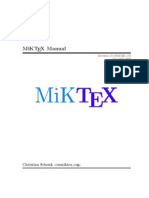 Windows operating systems. Perhaps the most popular is MiKTeX . It has worked well for me in the past. A beginner-friendly version of MiKTeX is ProTeXt. The following steps will help you download, install, and customize it on your PC. Preparation: Make sure you have Acrobat Reader or Acrobat Pro installed on your computer. 1. Downloading & Installation of MiKTeX via proTeXT (1) On your PC, create a folder c:\protext\download . Create another folder c:\miktex , and a third folder c:\TexnicCenter . (2) Go to www.tug.org/protext . Click on download the self-extracting protext.exe le. (3) Click on the last item, protext.exe. Choose Save, and save the le to the c:\protext\download folder you created under (1). This may take a while (10 to 30 minutes, depending on download source and speed). IMPORTANT for correct extraction in Windows 7: If youre using Windows 7, you will need to select run in the bottom bar after the download has completed, then enter c:\protext as the destination folder for the extraction. Click extract. (4) Older versions of Windows: After the download is complete, go to your download folder and double-click on the protext icon. As destination folder, choose c:\protext , and click extract. (5) Go to your c:\protext folder and double-click on Setup (this should be the last item in that folder). This opens a small window. Next to MiKTeX, click Install. (6) Choose Open and Yes, if a security window pops up. (7) Check the accept conditions box. (8) If hard drive space is not an issue, select Complete MiKTeX, else select Basic MiKTeX. (9) Shared Installation: check anyone who uses this computer (10) IMPORTANT: For Installation Directory, choose c:\miktex, the second folder you created under (1). (11) Under Settings, select Letter for paper size, and Yes for Install missing packages on-the-y. Click next and Start - this may take a while. Close the Wizard.1 2. Downloading, Installing & Customizing TeXnicCenter (1) On your PC, create a folder c:\TeXnicCenter\download . (2) Go to http://www.texniccenter.org. In the top menu bar, click on the green Download button. This opens the download page. Click on TeXnicCenter 2 Beta 1 Installer, under the blue information bar. Chose the version that ts your operating system (32 bits or 64 bits). Wait a few seconds for the download to start.
