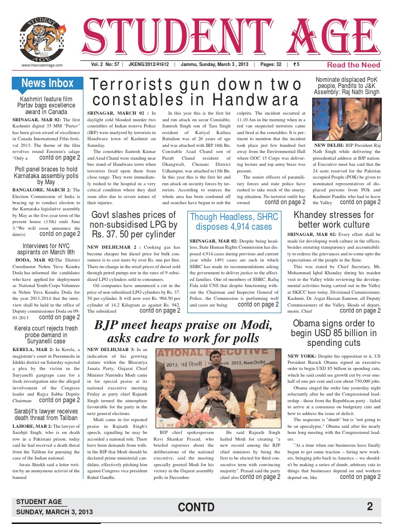 Vol. 2 No: 57 | JKENG/2012/41612 | Jammu, Sunday, March 3 , 2013 | Pages: 32 | `5
