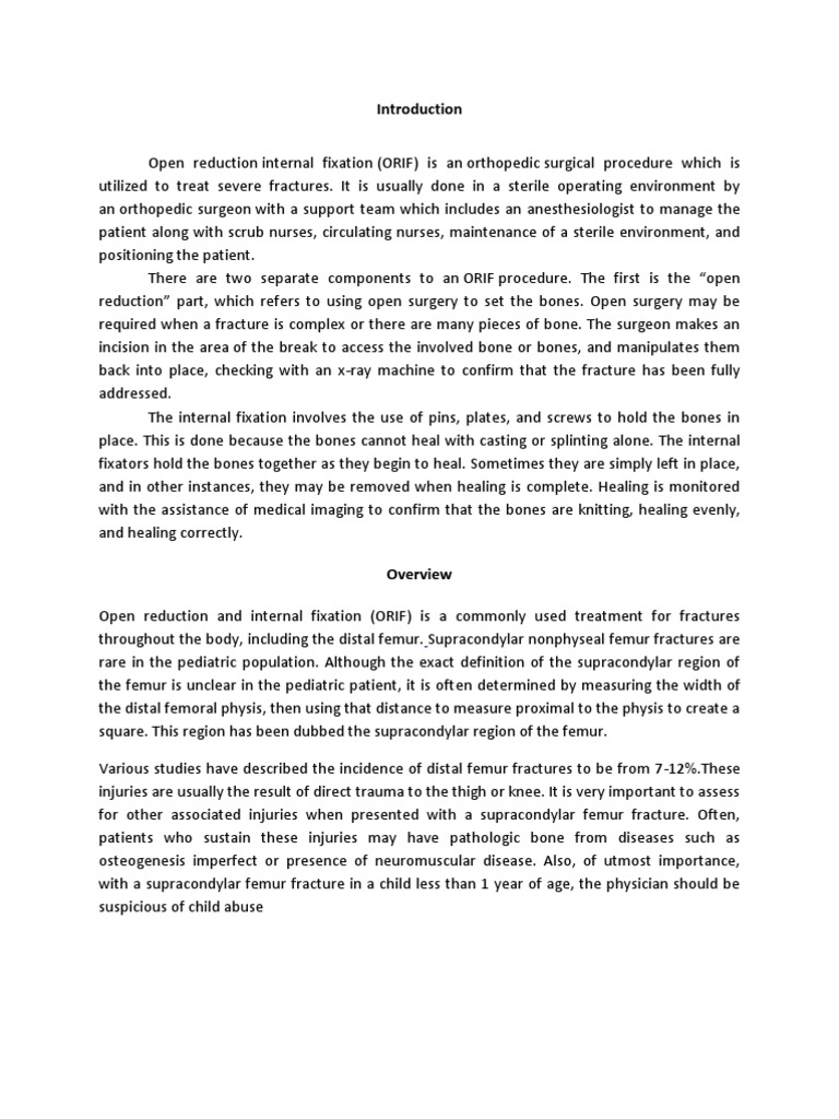 Introduction Open reduction internal fixation (ORIF) is an orthopedic surgical procedure which is utilized to treat severe fractures.