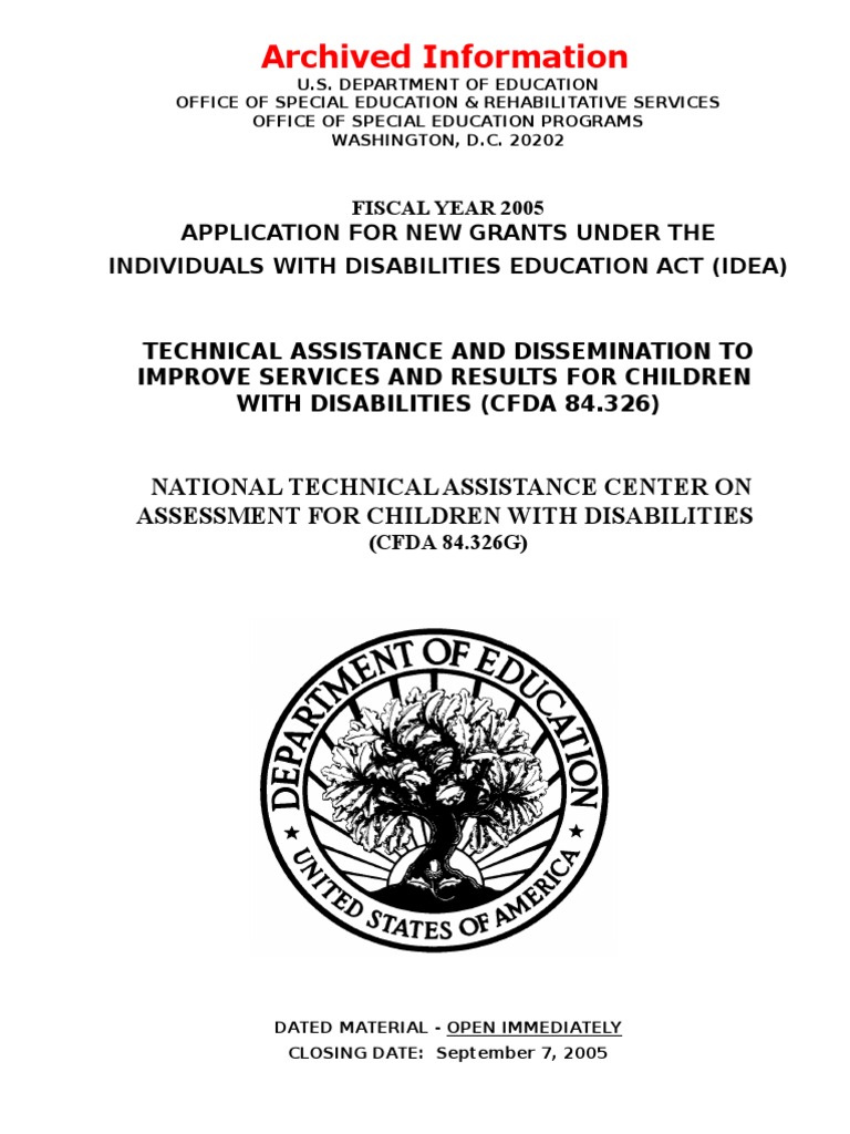 program--National Technical Assistance Center on Assessment for Children with Disabilities (CFDA
