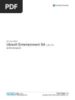 April 2011 Opening of a new credit line Ubisoft Divertissements Inc. signed a bilateral credit line for a period of two years and amounting to 25 million. This line is secured by Ubisoft Entertainment SA and follows the same covenants as other credit lines. June 2011 Extension of Gameloft Equity Swap contract The Equity Swap contract concluded on July 12, 2007 with Crdit Agricole Corporate and Investment Bank (formerly Calyon) on Gameloft shares has been extended for another two years, until July 15, 2013. September 2011 Sale of 8.5 million in receivables under the factoring agreement The factoring agreement on Credit for Multimedia titles (Canada), concluded between BNC and Ubisoft Divertissements Inc., allowed for the sale of receivables amounting to 8.5 million in the first half of the year. September 2011 Sale of research tax credit receivables Ubisoft Entertainment SA sold of a 3.6 million research tax credit claim for research expenditure incurred in the year ended March 31, 2011 by the companies forming part of the French tax group; it was assigned without recourse as a discount to Natexis. September 2011 Buyback of Ubisoft shares Ubisoft bought on the market between September 8 and September 19, 2011, 400,000 Ubisoft shares at an average price of 3.97, a share buyback authorized by the General Meeting of June 30, 2011 and implemented by the Board of Directors on the same date. This treasury stock has been allocated to cover stock option plan 24, authorized by the Board of Directors on March 9, 2012. October 2011 Partnership with France Tlvisions to produce a television series of Raving Rabbids In cooperation with France Tlvisions, Ubisoft Motion Pictures will produce 78 mini episodes in CGI. Raving Rabbids will debut on childrens television programming slot Ludo on France 3 in spring 2013. October 2011 Partnership with Nickelodeon to distribute the Raving Rabbids television series Partnership with Nickelodeon to distribute a television series of Raving Rabbids aimed at a global audience. Nickelodeon will broadcast the series in twenty-six 30-minute slots on TV channels around the world (except France) from 2013. November 2011 to March 2012 Sale of Gameloft shares Disposal of 3,171,818 Gameloft shares at an average price of 4.32. March 2012 Details released on Assassins Creed III The next installment in the flagship franchise for habitual gamers will be released on October 30, 2012. The game will be set against the backdrop of the American Revolution and will feature a new main character. March 2012 Sale of 22 million in receivables under the factoring agreement The factoring agreement on Credit for Multimedia titles (Canada), concluded between the BNC and Ubisoft Divertissements Inc., allowed for the sale of 22 million receivables in the second semester.