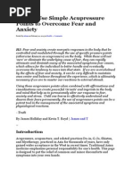 Acupressure is a method of using finger pressure on acupressure points to stimulate the self-healing ability of the body. The 365 points lie on energy pathways called meridians. A number of points, extra points are not on these meridians. Acupressure is particularly suitable as a self-treatment. Pressure on these acupressure points gives relaxation in the muscles, stimulates blood circulation and boosts the vital energy. Stress reduces, the immune system strengthens and a sense of wellbeing increases. The symptoms reduce at the place of the pressure point (local effects) or in a different location (distal impact) by the energy which is passed through the meridians. This is why each acupressure point has a positive influence multiple symptoms. Acupressure is used to harmonize the body and the prevention and relief of symptoms. Especially a combination of acupressure with deep breathing, visualization and affirmations increases the effect. An affirmation is a spoken compelling, affirmative thought with a positive feeling. Example: I let my expectations go. Acupressure is a safe and easy method to apply on yourself and others. It is an effective method to ease physical, mental and emotional symptoms. For the relief of symptoms you have a wide range of acupressure points to choose from. It is not necessary to treat all the points. Treating a number of points is already effective. Below youll find 3 acupressure points. In the full version of our e-book 78 acupressure points are described and youll get an extensive list of complaints so you know what acupressure points can be used to relieve certain symptoms. Enjoy accpresure!