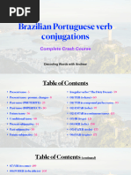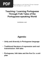 A gente sabe = We know The vowel changes that occur in Spanish and make conjugation that extra bit complicated, are much less frequent in Portuguese. In Spanish you have contar > cuento, cuentas but in Portuguese, its simply conto, conta You still have some exceptions that need to be learned but the number is much less than in Spanish. Many nouns with a ue in Spanish have an o in Portuguese. Similarly for ie and i.