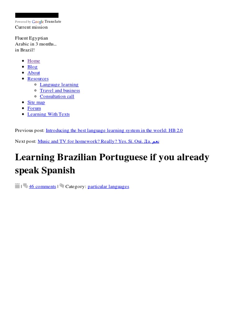 Current mission Fluent Egyptian Arabic in 3 months... in Brazil! Home Blog About Resources Language learning Travel and business Consultation call Site map Forum Learning With Texts Previous post: Introducing the best language learning system in the world: HB 2.0 Next post: Music and TV for homework? Really? Yes. S. Oui. .