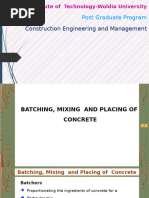 Construction Project Engineering Exposure conditions (constructions protected against rain and humidity, frost-thaw saturated (no saturated) with water, exposure to water under pressure, exposed to marine or chemical environment etc.). - Maximum size of aggregate. - w/c ratio. - Type of additive / admixture used. - Minimum cement content: Factors to be considered: 10 20 Watertightness (grades: P410 , P810 , P12 , P420 , P820 , P12 it may be tested by measuring the flow through a saturated specimen, of 100 mm respectively 200 mm, subjected to pressure. Freeze-thaw resistance G50, G100, G150. Proportioning relates to the following aspects: - Workability (regarding fresh concrete). - Durability, strength (regarding hardened concrete). - Economy by: Minimizing the amount of cement and w/c ratio. Minimizing the amount of water, to reduce cement content, and to increase strength durability. - Batch weights calculations. - Adjustments. Factors to be considered when choosing aggregates: - Economical consideration: Minimize water and cement, stiffest possible mix; Largest particle max size of aggregate, shape, surface texture; Optimize ratio of fine to coarse; Grading and its significance: consistency and strength. - Size and shape of members: maximum size aggregate; - Physical properties: strength; - Exposure condition: air entraining or not, sulfate attack; - Maximum aggregate size: The largest maximum aggregate size that will conform to limitations given below: Nominal maximum size aggregate (Dmax) should not be larger than: Dmax 1/4 of narrowest dimension of structural member; 1/3 thickness of slab 1/6 reservoir wall thickness spacing between re-bars 5 mm 1,3 x concrete cover of re-bars 1/3 concrete pump piping Factors to consider when choosing water to cement ratio: - Compressive strength is inversely proportional to w/c: - Economical consideration: minimize water and cement, stiffest possible mix.
