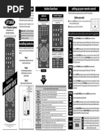 1. 2. Pull back the remote controls battery cover and remove it. Insert the two (2) supplied AA batteries according to the + and - marks in the battery case. Push the battery cover back into place. Test the unit by pressing any mode key (i.e., AUX, TV, or Cable). If batteries are inserted correctly, the selected mode key will light.