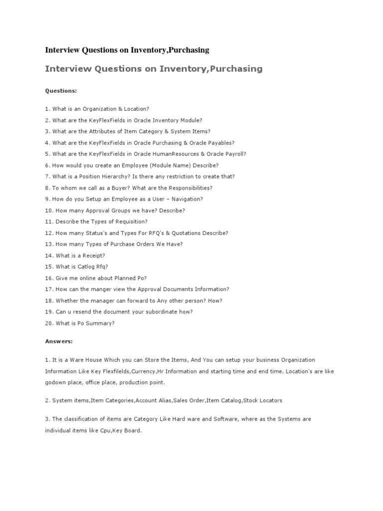 Interview Questions on Inventory,Purchasing Interview Questions on Inventory,Purchasing