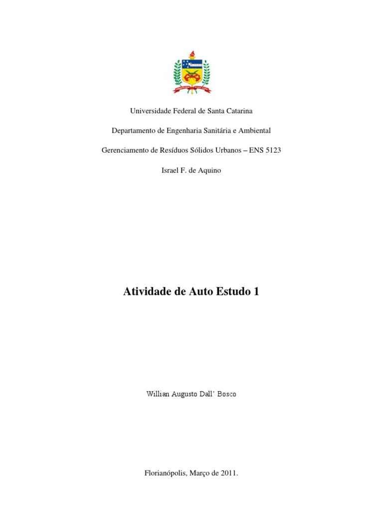 Concluso: O estudo demonstrou a dificuldade de desenvolver o gerenciamento integrado dos resduos slidos urbanos, que abrange um conjunto de fatores polticos, econmicos, operacionais, ambientais, legais e sociais. Isto se deve ao fato de que os resduos slidos percorrerem um longo caminho (gerao, acondicionamento, coleta, transporte, tratamento e disposio final) e envolvem diversos agentes (poder pblico, iniciativa privada e a sociedade civil). Os principais problemas so a falta de capacitao tcnica da administrao pblica, a ausncia de polticas pblicas, a pouca conscientizao da populao que no faz a separao destes materiais na fonte e a no existncia de uma usina de compostagem. Alm disso, a usina de triagem existente no tem sido operada adequadamente e a situao da rea de disposio final de RSU do municpio precria, sem medidas de proteo ao meio ambiente e a sade pblica, sem a cobertura diria de terra, sem monitoramento, com uma grande quantidade de resduos espalhados nas reas de circulao e a presena de catadores e muitos animais. Quanto ao processo de coleta e comercializao de reciclveis realizados pelos catadores, os principais problemas identificados so o nmero significativo destas pessoas na cidade, inclusive jovens e crianas, que predominantemente trabalham de forma autnoma, em condies precrias, tm que percorrer grandes distncias para realizar a catao na rea central da cidade, possuem baixa escolaridade e a maioria tem a atividade de catao como nica fonte de renda, cujo valor inferior ao salrio mnimo. Alm disso, o grande nmero de atravessadores e a grande distncia at a indstria de reciclagem fazem com que os preos pagos pelos materiais reciclveis aos catadores sejam baixos. Portanto, para o bom funcionamento de um gerenciamento participativo e integrado dos RSU necessrio participao de todos os agentes envolvidos (populao, catadores e prefeitura). Tambm deve-se atentar a viabilidade tcnica e econmica dos projetos, aumentando a chance de sucesso.