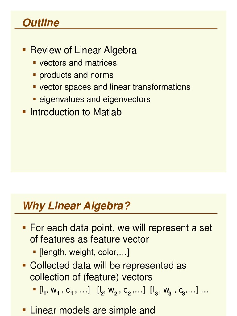 Vectors x1, x2 , , xn are linearly dependent if there exist constants 1, 2 , , n s.t. 1. 1 x 1 + 2 x 2 + + n x n = 0 2. at least one i 0 Vectors x1, x2 , , xn are linearly independent if 1 x1 + 2 x2 + + n xn = 0 1 = = n = 0