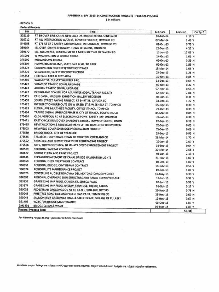 Partial listing of capital projects authorized through the 2013-14 SFY State Budget, and including projects in Oswego, Jefferson and St. Lawrence Counties.