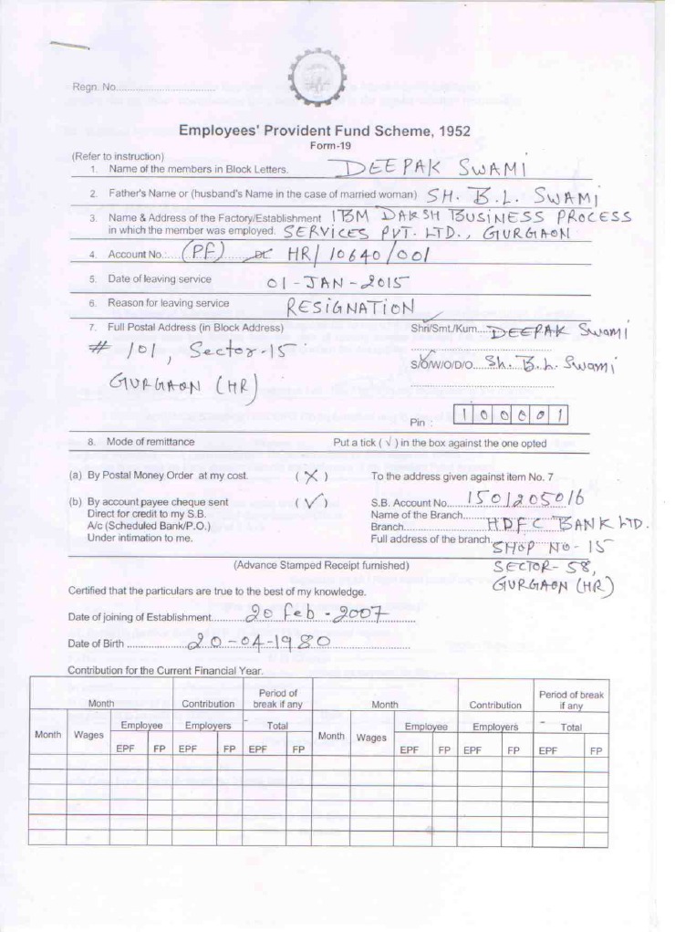 PF form