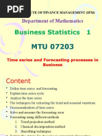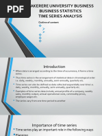 a period of time usually weekly, monthly, quarterly, or yearly. Some examples of time series are: (i) The Annual Production of Rice over the last 10 years (ii) The daily closing price of a share on a stock exchange for a week (iii) The monthly electric bills for 12 months. The purpose of time series analysis is to describe the past movements and fluctuations to analyze their causes and interrelationship, to examine the causal factors operating in the present and to explain what significance the present combination of causal factors has in relation to the future. Components of Time Series: There are four components to a time series: (i) Trend or secular trend (ii) The seasonal variation (iii) The cyclical variation (iv) The irregular variation. Secular Trend: The smooth, regular and gradual movement of a time series which shows the increase or decline over a long period of time is called the secular trend. Over a long period of time, if observed, most time series reveal either an inclining or a declining tendency. This general tendency of a time series over a fairly long period of time is termed a secular trend. This frequently happens with business and economic time series. Inclining tendency is observed in case of population, agricultural production, money in circulation etc. whereas declining tendency is inherent in time series relating to birth rate, death rate and epidemic deaths etc. Due to advancement of medical science, facilities of health care and higher literacy, birth rate, death rate and deaths due to epidemics are gradually decreasing. Seasonal Variation: Another component of a time series is seasonal variation. Many sales, production and other series fluctuate with the season. For example, the sale of woolen electric fan rises in summer. The sales of clothing and shoes rise extremely before Eid and Durga Puja.