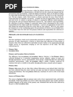 In example 2, the average annual household income is our parameter of interest. In example 3, the proportion of regular smokers in the population is a parameter of interest. In example 4, the percentage of good computer chips in the population is a parameter of interest. In Example 5, the percentage of households (within the state) having mobile phone(s) is a parameter of interest. Types of Statistics The study of statistics is usually divided into two categories: descriptive statistics and inferential statistics. Descriptive Statistics The definition of statistics given earlier referred to organizing, presenting, analyzing . . . data. This facet of statistics is usually referred to as descriptive statistics. Descriptive Statistics: Methods of organizing, summarizing, and presenting data in an informative way. For instance, the United States government reports the population of the United States was 179,323,000 in 1960; 203,302,000 in 1970; 226,542,000 in 1980; 248,709,000 in 1990, and 265,000,000 in 2000. This information is descriptive statistics. It is descriptive statistics if we calculate the percentage growth from one decade to the next. However, it would not be descriptive statistics if we used these to estimate the population of the United States in the year 2011 or the percentage growth from 2000 to 2010. Why? Because these statistics are not being used to summarize past populations but to estimate future populations. The following are some other examples of descriptive statistics. There are a total of 46,837 miles of interstate highways in the United States. The interstate system represents only 1 percent of the nations total roads but carries more than 20 percent of the traffic. The longest is I-90, which stretches from Boston to Seattle, a distance of 3,099 miles. The shortest is I-878 in New York City, which is 0.70 of a mile in length. Alaska does not have any interstate highways, Texas has the most interstate miles at 3,232, and New York has the most interstate routes with 28. Inferential Statistics The second type of statistics is inferential statisticsalso called statistical inference. Our main concern regarding inferential statistics is finding something about a population from a sample taken from that population. For example, a recent survey showed only 46 percent of high school seniors can solve problems involving fractions, decimals, and percentages; and only 77 percent of high school seniors correctly totaled the cost of salad, a burger, fries, and a cola on a restaurant menu. Since these are inferences about a population (all high school seniors) based on sample data, we refer to them as inferential statistics. You might think of inferential statistics as a best guess of a population value based on sample information. Inferential Statistics: The methods used to estimate a property of a population on the basis of a sample. Sources of Data The choice of a data collection method from a particular source depends on the facilities available, the extent of accuracy required in analyses, the expertise of the investigator, the time span of the study, and the amount of money and other resources required for data collection. When the data to be collected are very voluminous and require huge amounts of money, manpower, and time, reasonably accurate conclusions can be drawn by observing even a small part of the population provided the concept of sampling is used objectively. Data sources are classified as (i) primary sources, and (ii) secondary sources. Primary Data Sources Individuals, focus groups, and/or panels of respondents specifically decided upon and set up by the investigator for data collection are examples of primary data sources. Secondary Data Sources: Secondary data refer to those data that have been collected earlier for some purpose other than the analysis currently being undertaken. Besides newspapers and business magazines, other sources of such data are as follows: Government publications include publications by Bureau of Statistics, Bangladesh Bank Bulletin etc. Non-Govt. publications include publications of various industrial and trade associations. International organizations which publish data are IMF, ILO, WHO, UNICEF etc. Methods of Organizing Data Raw Data: Numerical data collected and presented in their original form are raw data. There are many ways to sort and organize the raw data. There are many ways to organize these data. Classification The raw data are so scattered that these are not used directly for necessary analysis or it is not advantageous to use these in raw form. For analytical purpose, data are condensed. One of the condensation techniques is to present the data in tabular form so that the main feature of the data is expressed and it is understood even by a layman. The table contains rows and columns, where rows are used to accommodate all information of a character in different levels and columns are for the same purpose but for another character. The number of observations of a character is