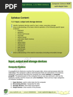 The storage capacity of memory is measured in Bytes. Usually RAM can hold millions of bytes of data, so you will see capacities measured in: Megabytes (MB) or 1,000,000 (1 million) Bytes Gigabytes (GB) or 1,000,000,000 (1 billion) Bytes So, if a computer has 2GB of RAM, it can hold 2 billion bytes of data and instructions at any time. Read-Only Memory (ROM) Read-Only Memory (ROM) is used in most computers to hold a small, special piece of software: the 'boot up' program. This software runs when the computer is switched on or 'boots up'. The software checks the computers hardware and then loads the operating system. ROM is non-volatile storage. This means that the data it contains is never lost, even if the power is switched off. This 'boot up' software is known as the BIOS (Basic Input Output System) Peripheral Devices Technically, a computer need only be made up of a CPU and some RAM. But a computer like this would not be much use to anybody other devices need to be connected to allow data to be passed in and out of the computer. The general name for these extra devices is peripheral devices. They are usually categorized into input devices, output devices and storage devices. Input and output devices are explored more fully in Section 2. Storage devices are explored more fully in Section 3. 'Peripheral' literally means 'around the edge'. In other words these devices are not part of the central core of the computer. What Are Input Devices? Devices that pass data into the computer are known as input devices. A keyboard, a mouse and a webcam are all examples of input devices.