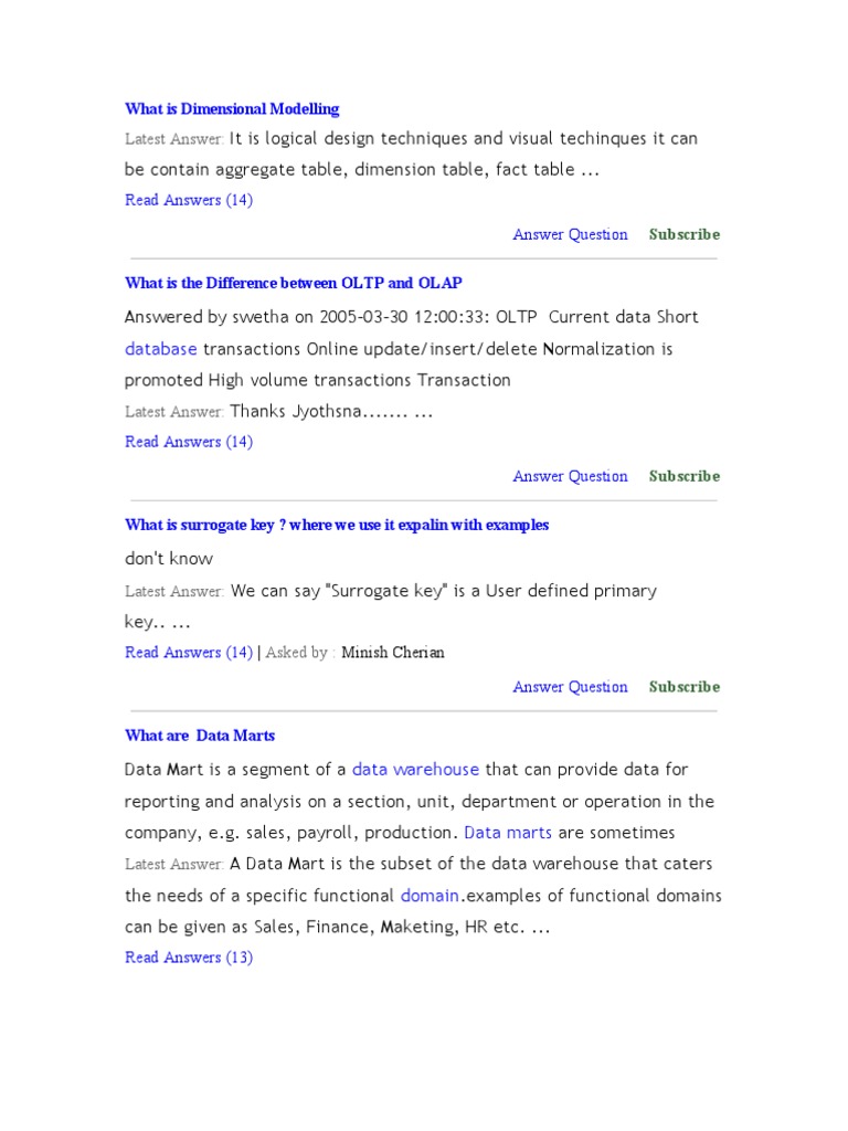 Latest Answer: Dimensional Modelling is the Analysis of the Transactional